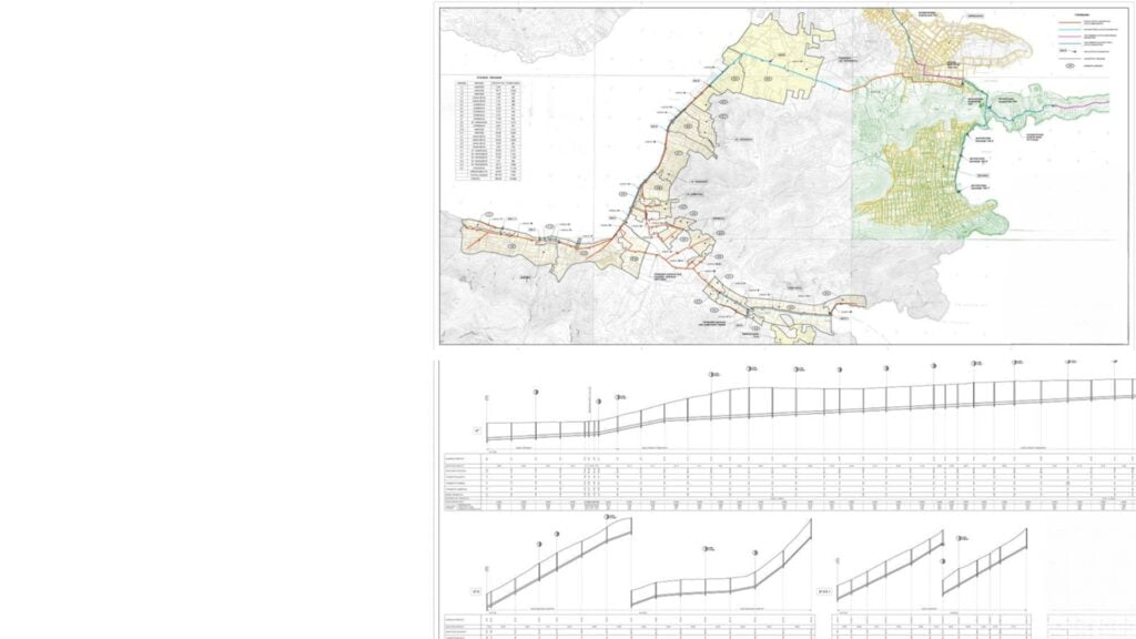 Production of detailed horizontal plans and profiles of all the pipes of the network with hydraulic calculations
